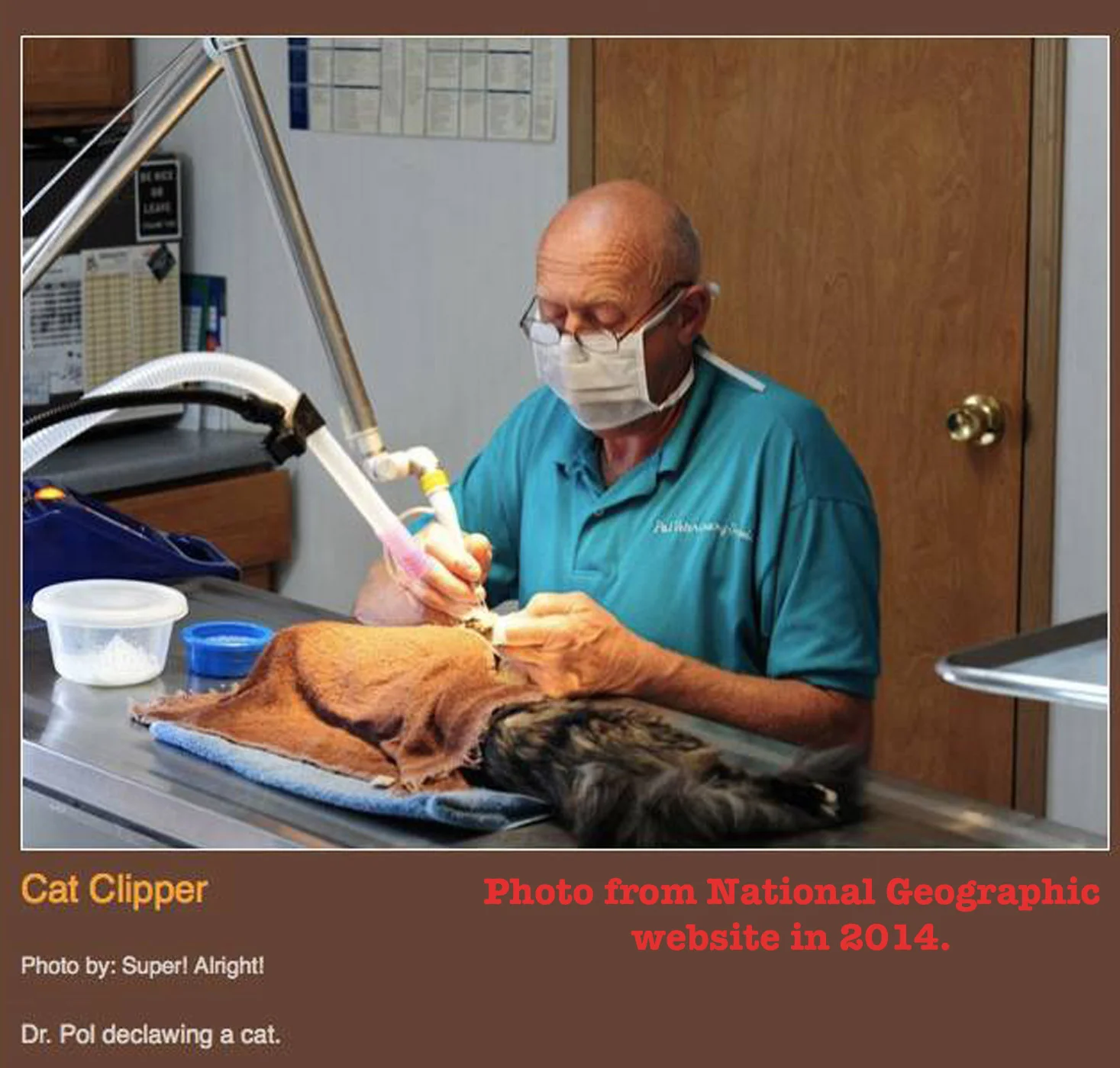 He was then hit with multiple complaints, including not using an incubator on the animal during the procedure. Other charges he had to answer to included failure to use the proper protective surgical equipment (caps & masks).